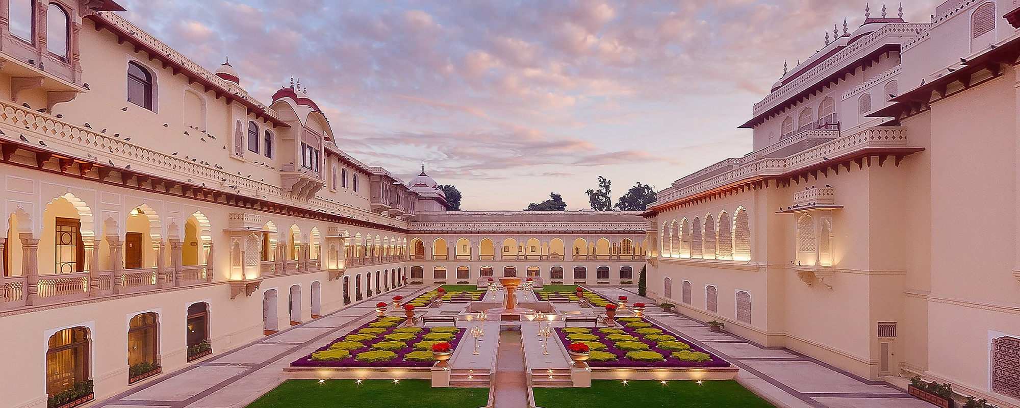 The expansive property spans 18 acres of landscaped gardens, dotted with historic havelis, courtyards, fountains, and peacocks. It has hosted the annual Jaipur Literature Festival since 2006, reinforcing its standing as a cultural landmark.