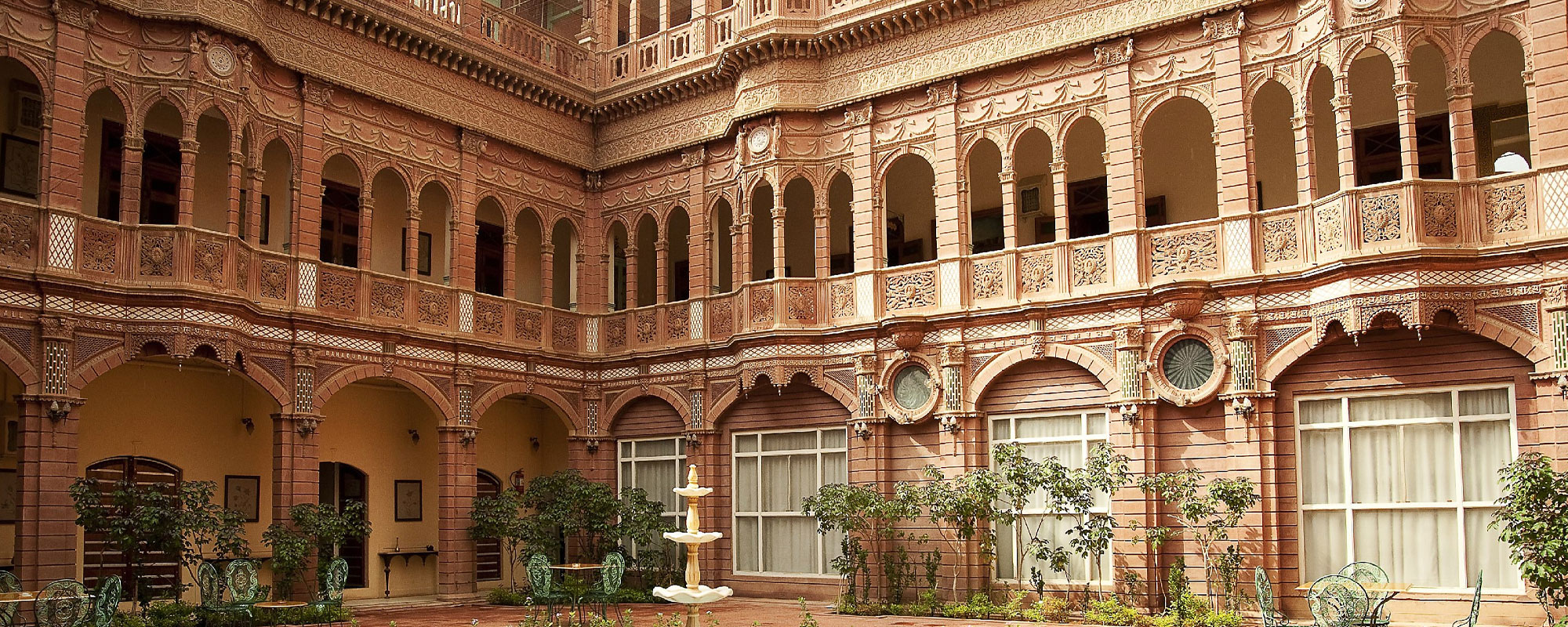 Located amidst the tranquil beauty of the Thar Desert, Hotel Gajner Palace in Bikaner is a majestic heritage hotel that offers a glimpse into Rajasthan's regal past. Set against the backdrop of the sprawling Gajner Lake and surrounded by lush greenery, this palatial retreat exudes old-world charm and grandeur.