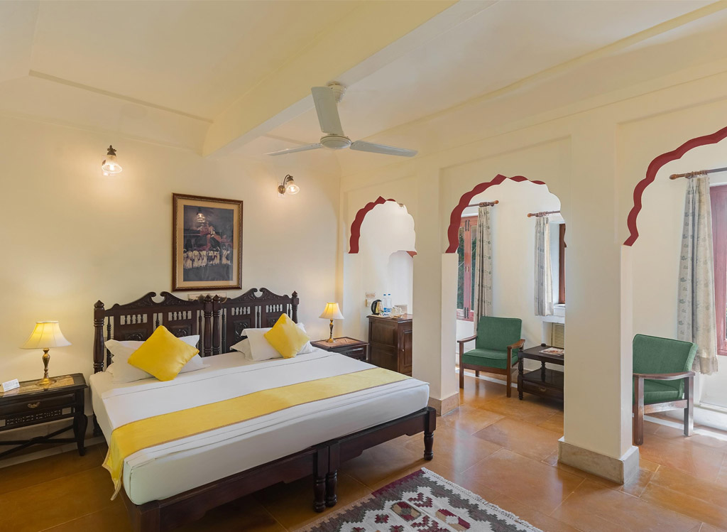Hotel Mandir Palace has around 28 elegantly appointed rooms, which include 21 Deluxe Rooms, 5 Golden Suites, and 2 Surya Mahal Suites. The Rooms and suites are tastefully furnished to meet the requirements of the modern traveler.