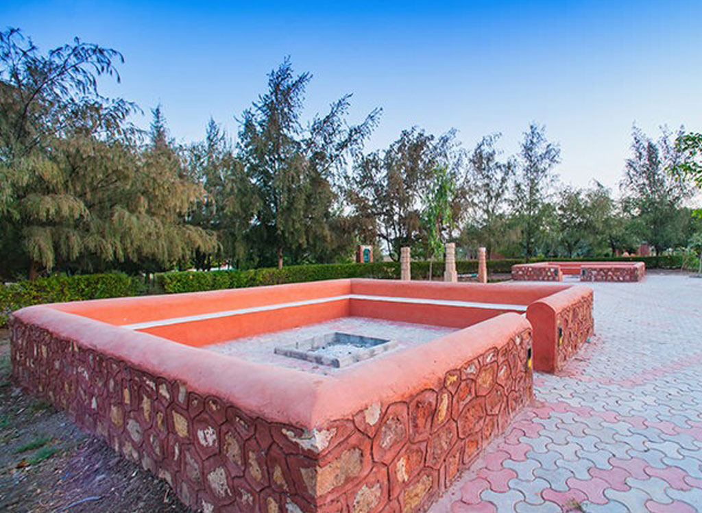 Spread across 18 acres of earthy charm near Bajana and the Wild Ass Sanctuary, Royal Safari Camp offers an immersive escape into the wilderness of the Little Rann of Kutch. Set amid red stone cottages crafted by local artisans, each unit blends heritage aesthetics with modern comforts—think air-conditioning, private balconies, luxurious bathrooms, and satellite TV—against a backdrop of sandy landscapes and desert flora.