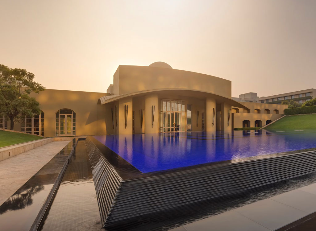 Nestled in Gurugram City, Haryana, Trident Hotel, Gurgaon is a sprawling luxury property spread over nearly 30,000 square meters of landscaped gardens. With sun-kissed courtyards and serene reflection pools, the hotel offers a resort-like ambiance and is conveniently located just 15 minutes from New Delhi’s international and domestic airport terminals. As one of the best hotels in Gurgaon near the airport, Trident Gurgaon stands out for its excellent guest services, an array of 24-hour facilities, and its commitment to 100% solar power.